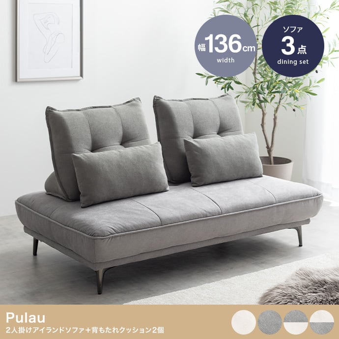 【3点セット】Pulau 2人掛けアイランドソファ+自立式背もたれクッション2個