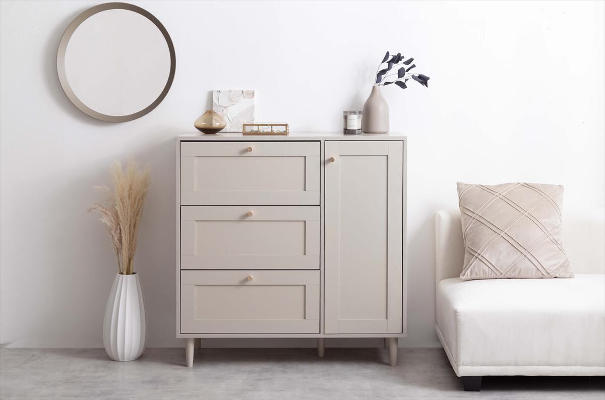 品のあるデザインと柔らかなニュアンスカラーが印象的な『Calan(カラン)』シリーズのキャビネット