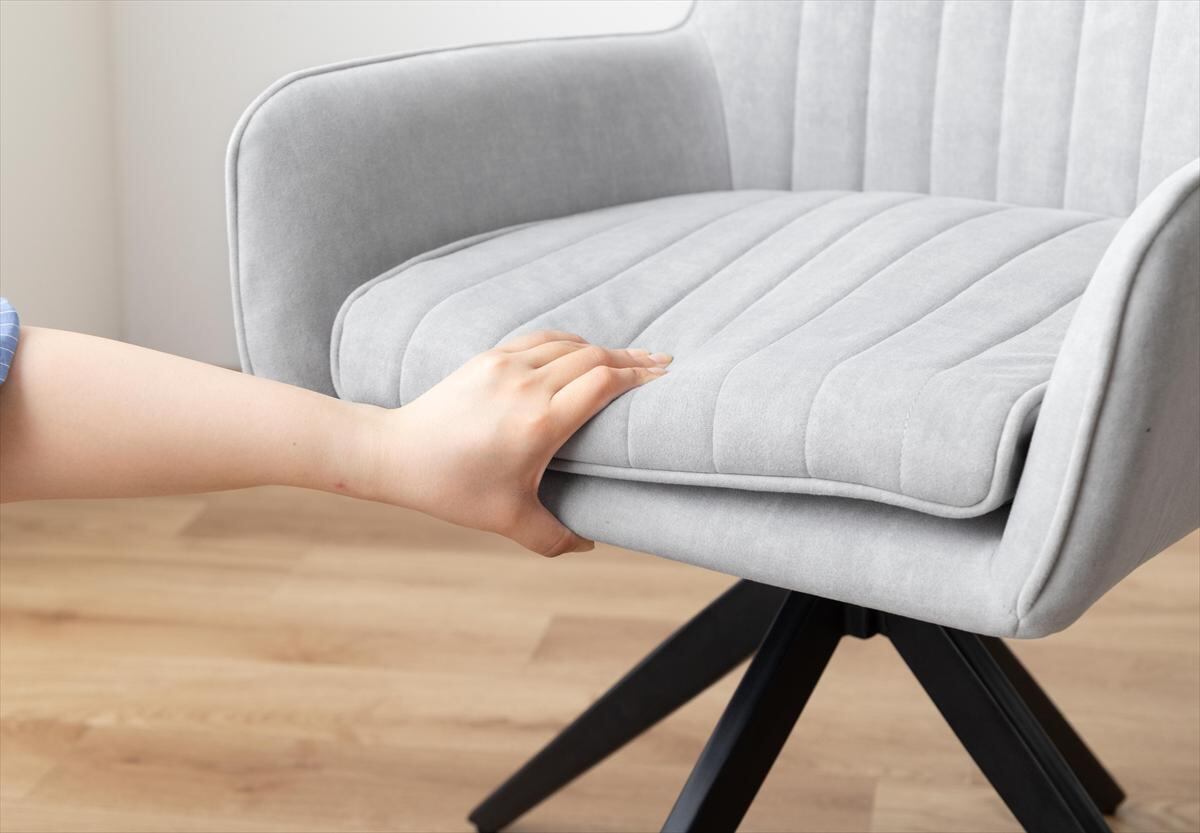 座面のクッションはやわらかく、長時間の利用でも疲れにくい設計です。立ち上がりやすい高さに設定されており、あらゆる方にご利用いただけます。家族や友人との楽しい食事の時間をサポートします!