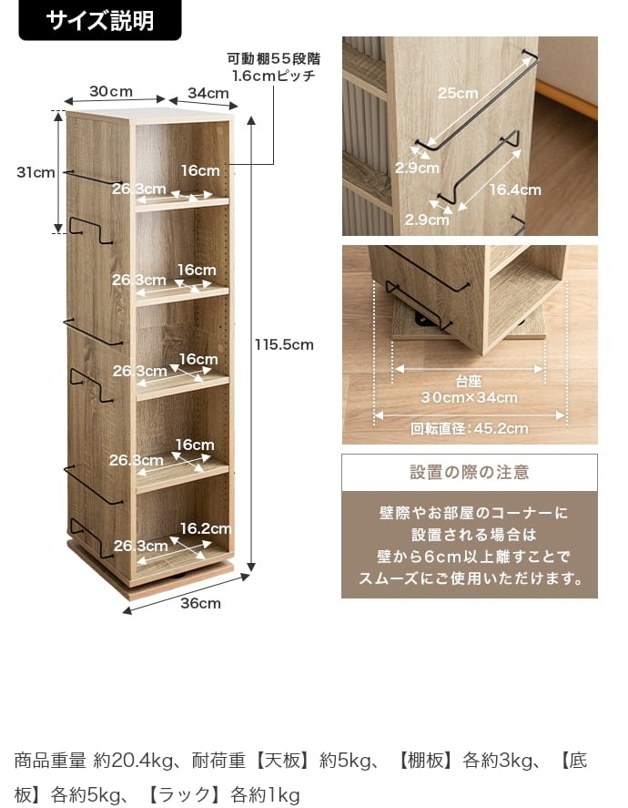 この『Libro 回転ブックシェルフ』で、スタイリッシュかつ機能的な収納空間を実現しましょう!本や大切なアイテムをおしゃれに飾り、素敵なライフスタイルをお楽しみください!