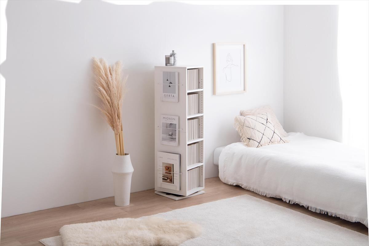 シンプルでスタイリッシュなこの回転ブックシェルフは、限られたスペースを有効に活用するための最適な収納アイテムです!