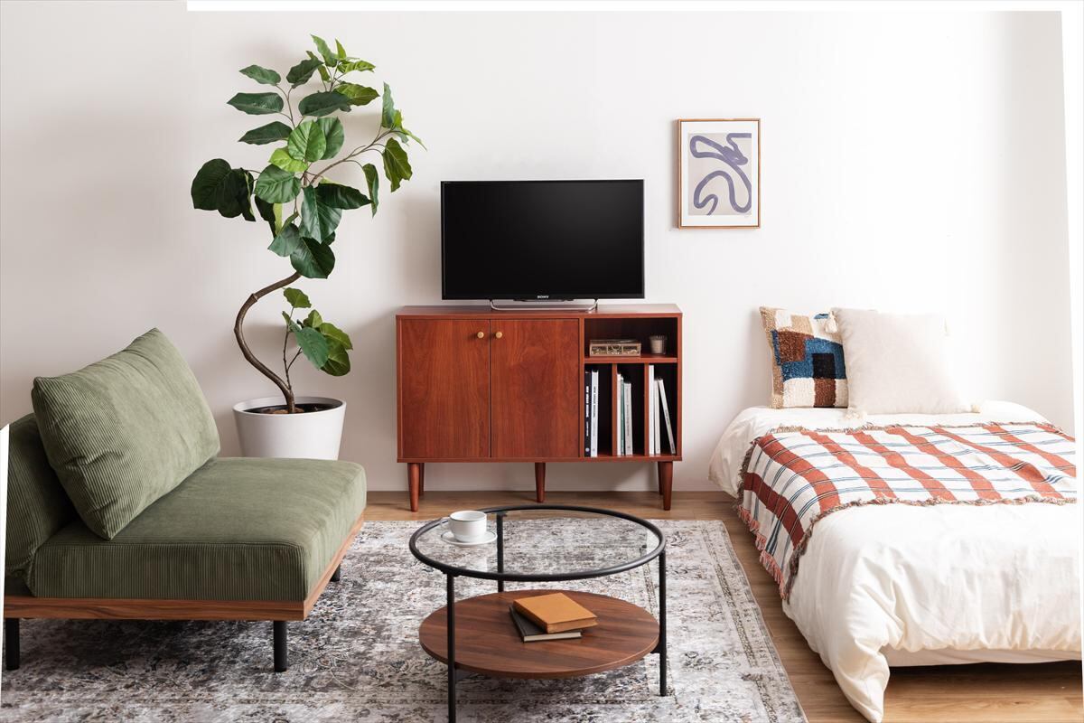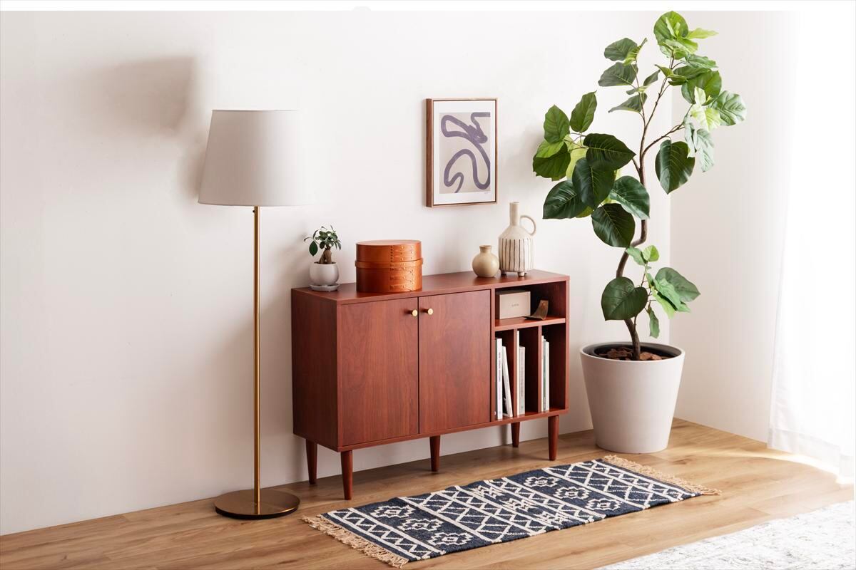 幅100cmのワイドなデザインは、オープン棚と引き出し、扉収納により、様々なアイテムをたっぷり収納できます。本やインテリア小物、思い出の品まで、必要な物がさっと手に取れる便利な設計です。日常生活をより快適に過ごすための工夫が詰まっております!