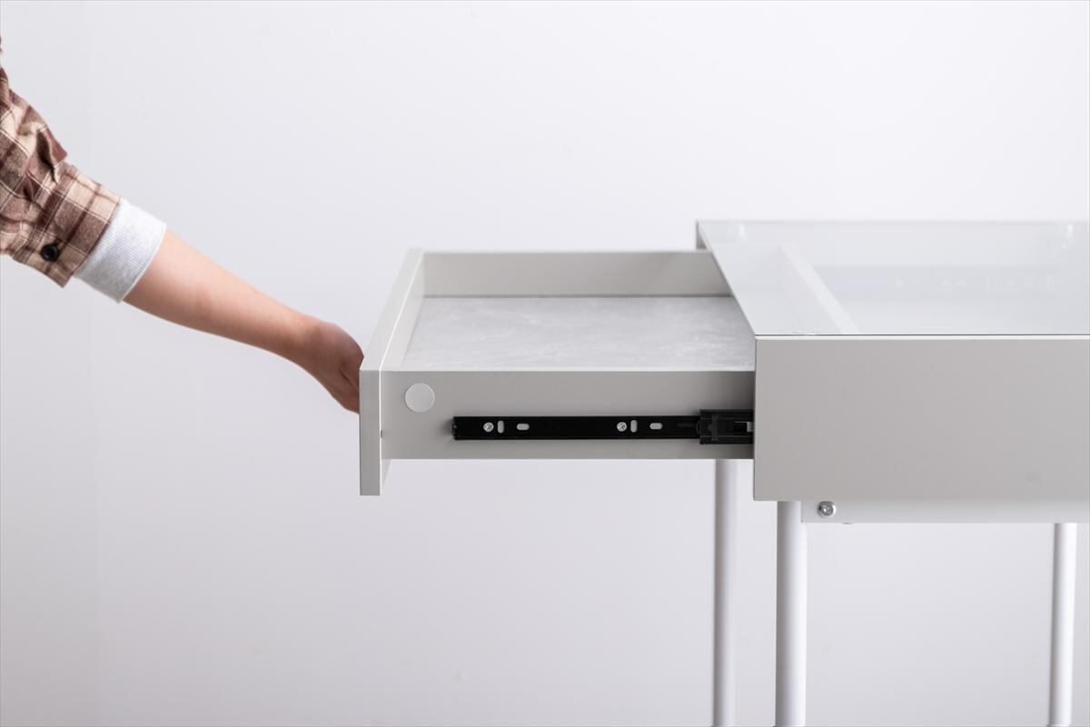【単品】幅80cm 引き出し付きガラス天板デスク