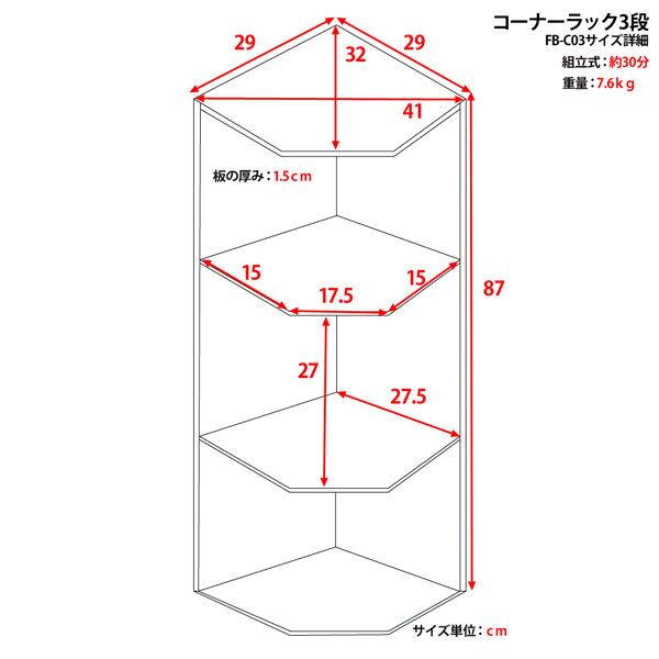 3段のコーナーラックは、収納スペースを有効活用できる便利なアイテムです。コーナーにピッタリとフィットする設計で、無駄なスペースを無くし、部屋の印象もすっきりとまとめます。デザインもシンプルで、どんなインテリアにも馴染みます。