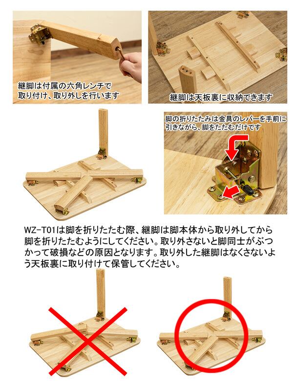 脚は折りたたみ出来ます(折りたたむ際は、必ず継脚は取り外して下さい。脚同士が重なり破損等の原因となります)