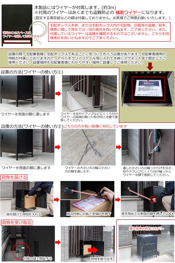 配達業者向けの案内用紙も付属し使いやすい仕様になっています