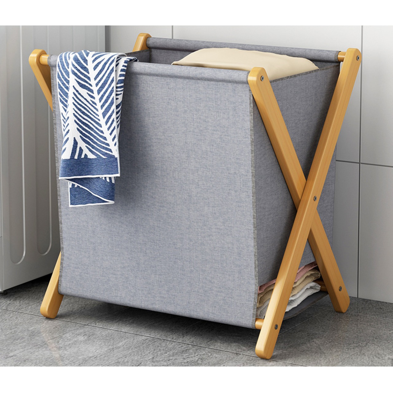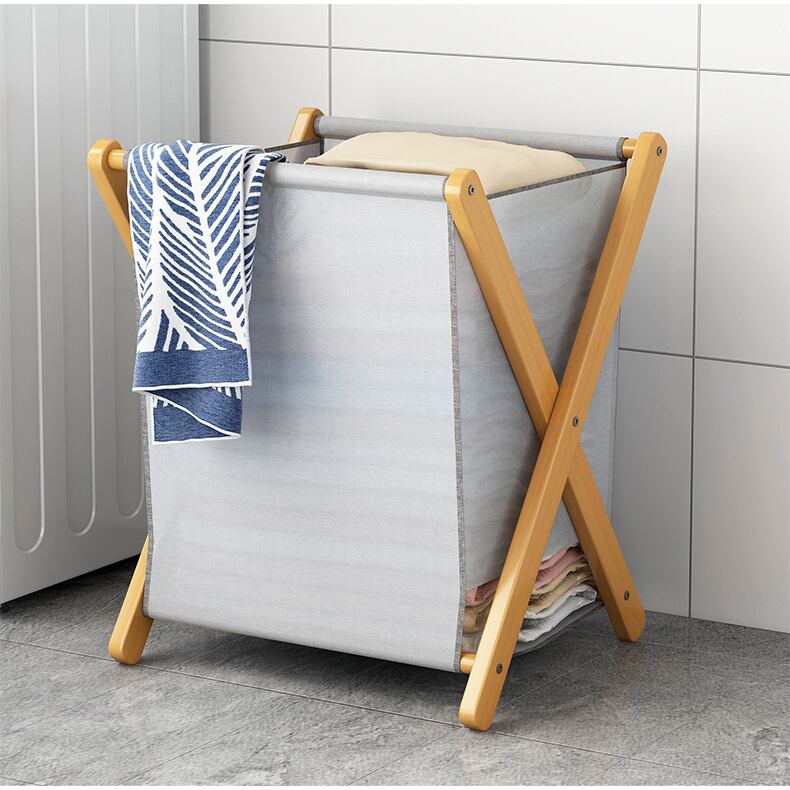 洗濯カゴ ランドリーバスケット 折り畳み 木製シェルフ 大