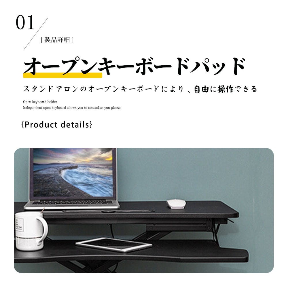 快適な作業環境を実現するスタンディングデスク。長時間のデスクワークでお悩みの方におすすめのアイテムです。高さの調節が可能なので、立ったまま作業することも、座ってリラックスしながら作業することもできます。また、ノートパソコンやパソコンなど、様々なデバイスを置くのに最適なサイズとなっており、快適な作業環境を提供してくれます。