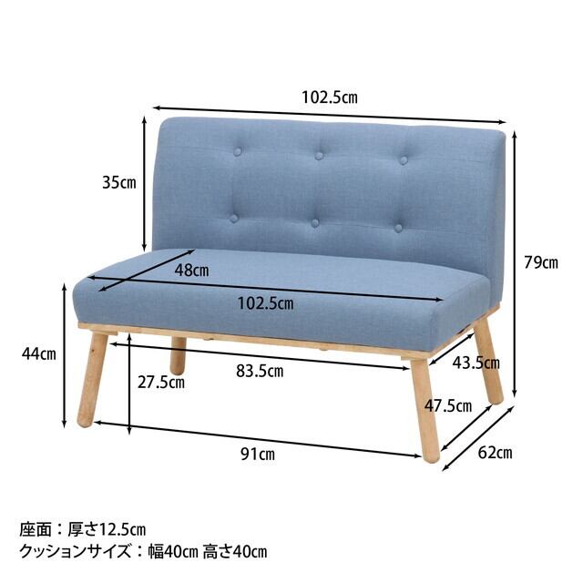 ファブリック素材と天然木がマッチしたオシャレな2人掛けソファです。