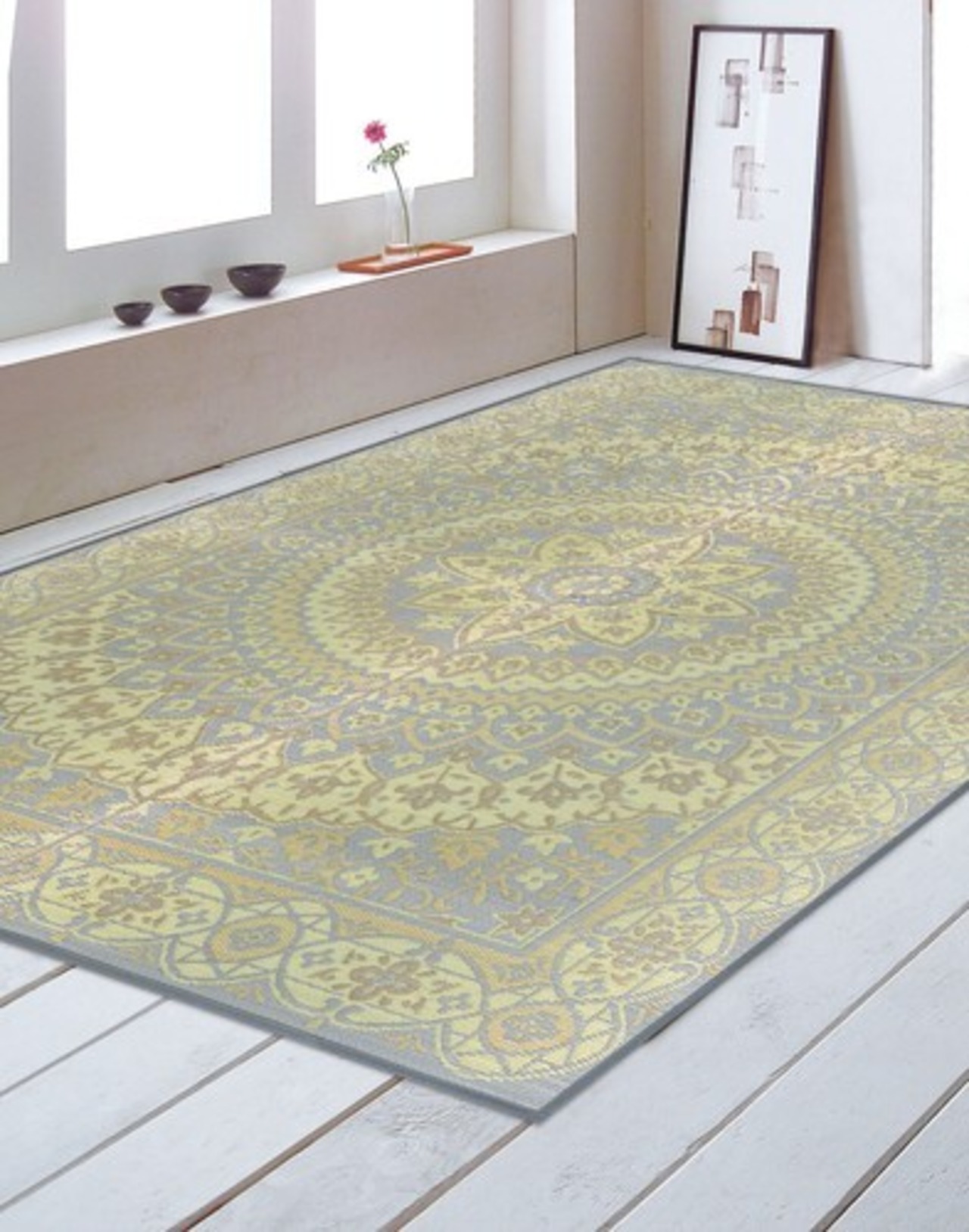 純国産い草を使用した3重織メダリオン柄い草ラグ
